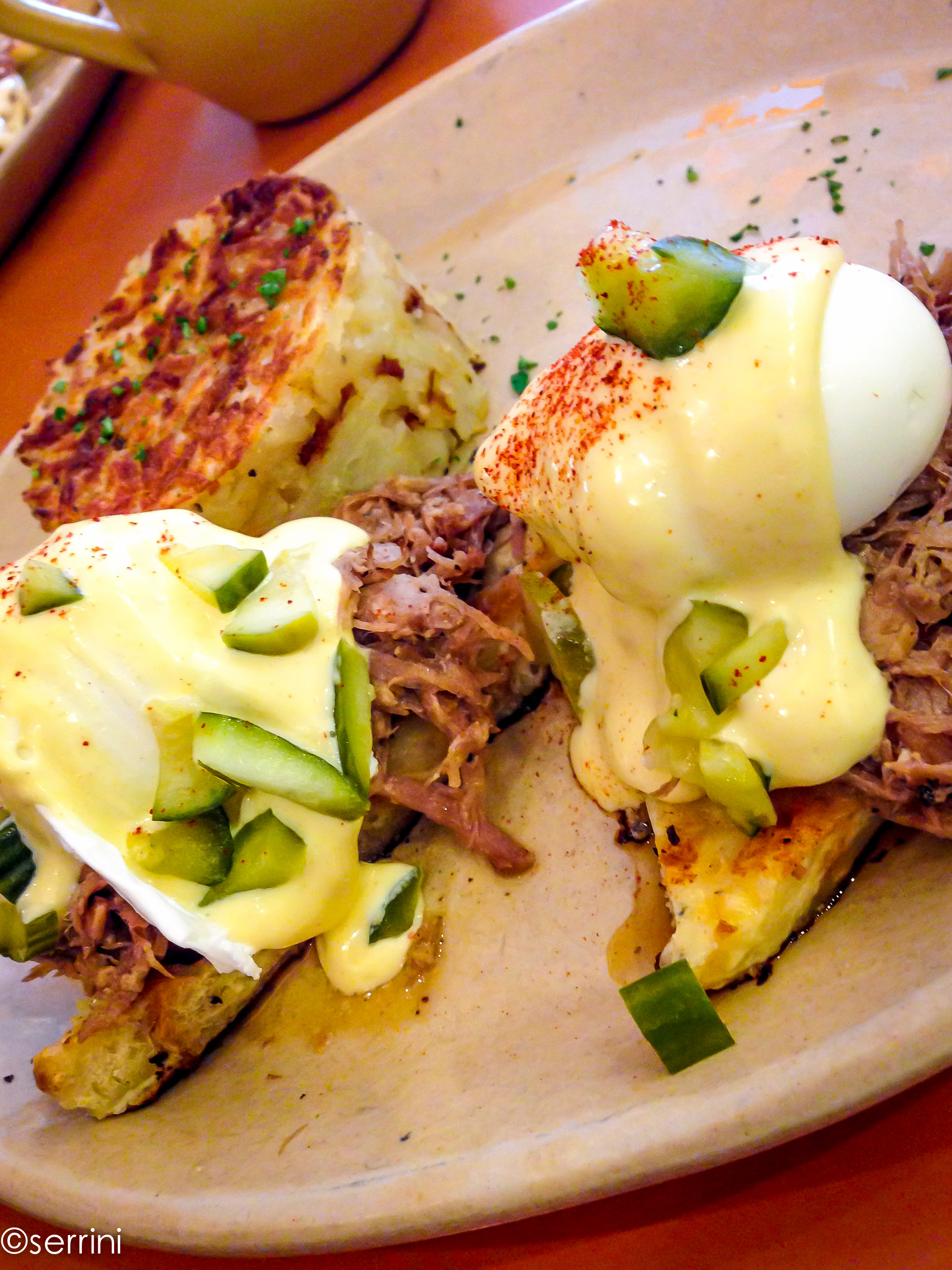 Literally cakes made in a pan. and you can get all three. On one plate. All three in your mouth if you want. Yes. Have your pancake and eat it too. They have an entire section entitled “The Art of the Hollandaise”. Finally, someone gets it. I had the Havana Benny which is shaved ranch ham and slow roasted pork served over a savory Swiss cheese bread pudding, topped with poached eggs, Dijon hollandaise and diced house pickles. After I finished slowly rubbing my face in it (as I was making out with my brunch), I ate it, and was in heaven.