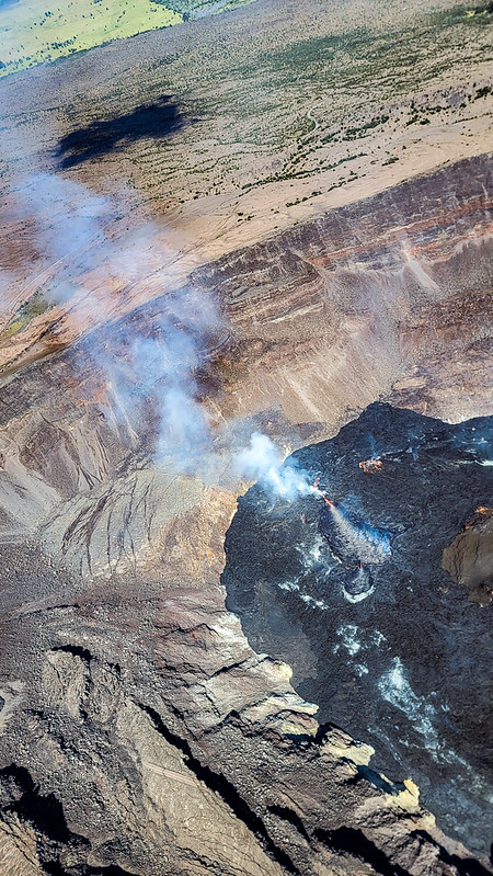 I was surprised to be hanging out of a hovering machine directly over a smoking pit of brimstone within a few minutes. It is incredible not just from the unique perspective, but to realize how very close everyone lives to potential annihilation. I snapped away taking legendary shots of this raw and powerful nature, feeling the turbulent air slide our whirlybird around in the blue sky. Seeing the planet’s open wounds that close gives you a new beautiful perspective on what Mother Earth is really made of.
